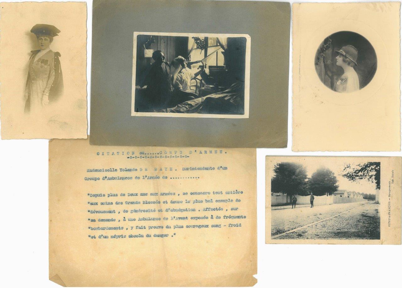 " Il faut rappeler que Yolande de Baye est à l'époque une jeune fille de 24 ans patriote ardente, engager sur le front avec sa mère pour organiser des formations sanitaires. Elle débarque à Verdun avec son bataillon de médecins et d'infirmières, sans souci du danger. Elle y installe un hôpital d'évacuation, malheureusement tout proche d'un dépôt de munitions, qui devient vite la cible des Allemands. Courageuse, l'infirmière major reste à son poste, ainsi que toute son équipe, allant jusqu'à donner son casque à l'une de ses compagnes. Blessée au visage le 17 août 1917, elle recevra des mains du général Pétain la légion d'honneur et fera la Une de toute la presse. Yolande sera l'une des maîtresses du général Pétain durant la Grande Guerre. Au printemps 1916, une rumeur circule même de mariage, vite démentie par le général lui-même, ennuyé que cela revienne aux oreilles de sa compagne officielle Eugénie Hardon. Mais il conservera un contact privilégié avec la jeune femme.
