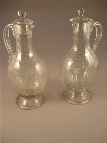 DEUX CARAFES à vin en verre taillé.