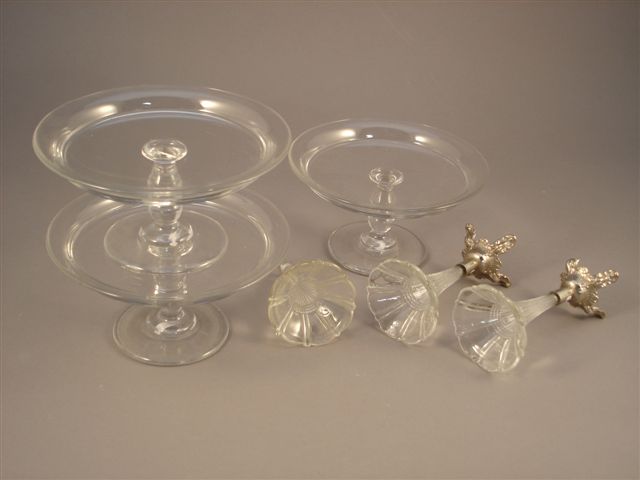 ENSEMBLE DE VERRERIES constitué de 3 coupes sur pied, 3 petits vases soliflore (accidents et manques).