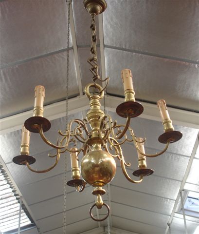 LUSTRE en bronze à 6 bras de lumière à enroulements. Style hollandais.