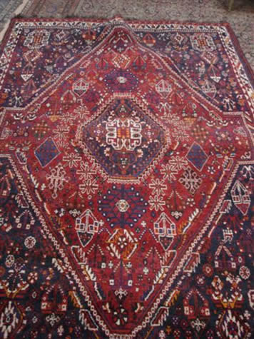 TAPIS. Médaillon central à fond rouge sur fond bleu. 172 x 261 cm.