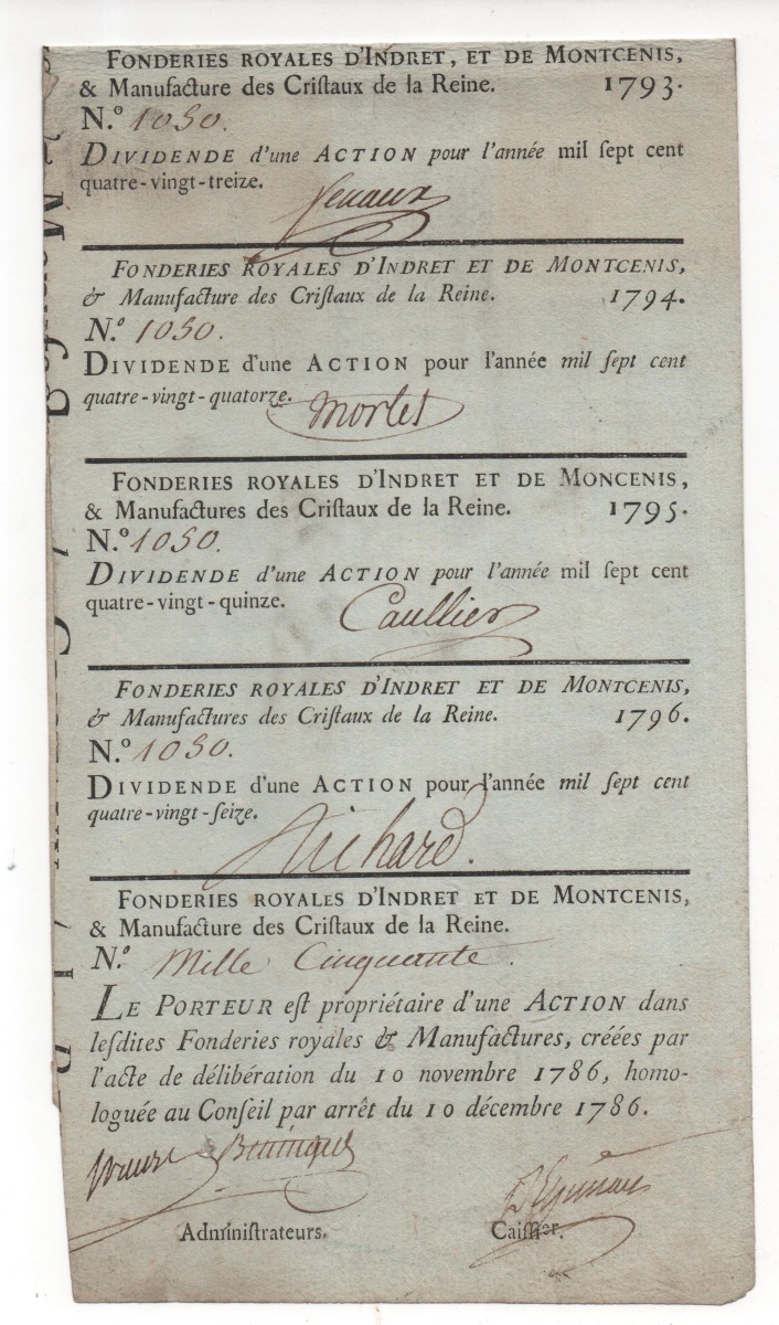 [Louis XVI - Actions] Fonderies royales d'Indret et de Montcenis.