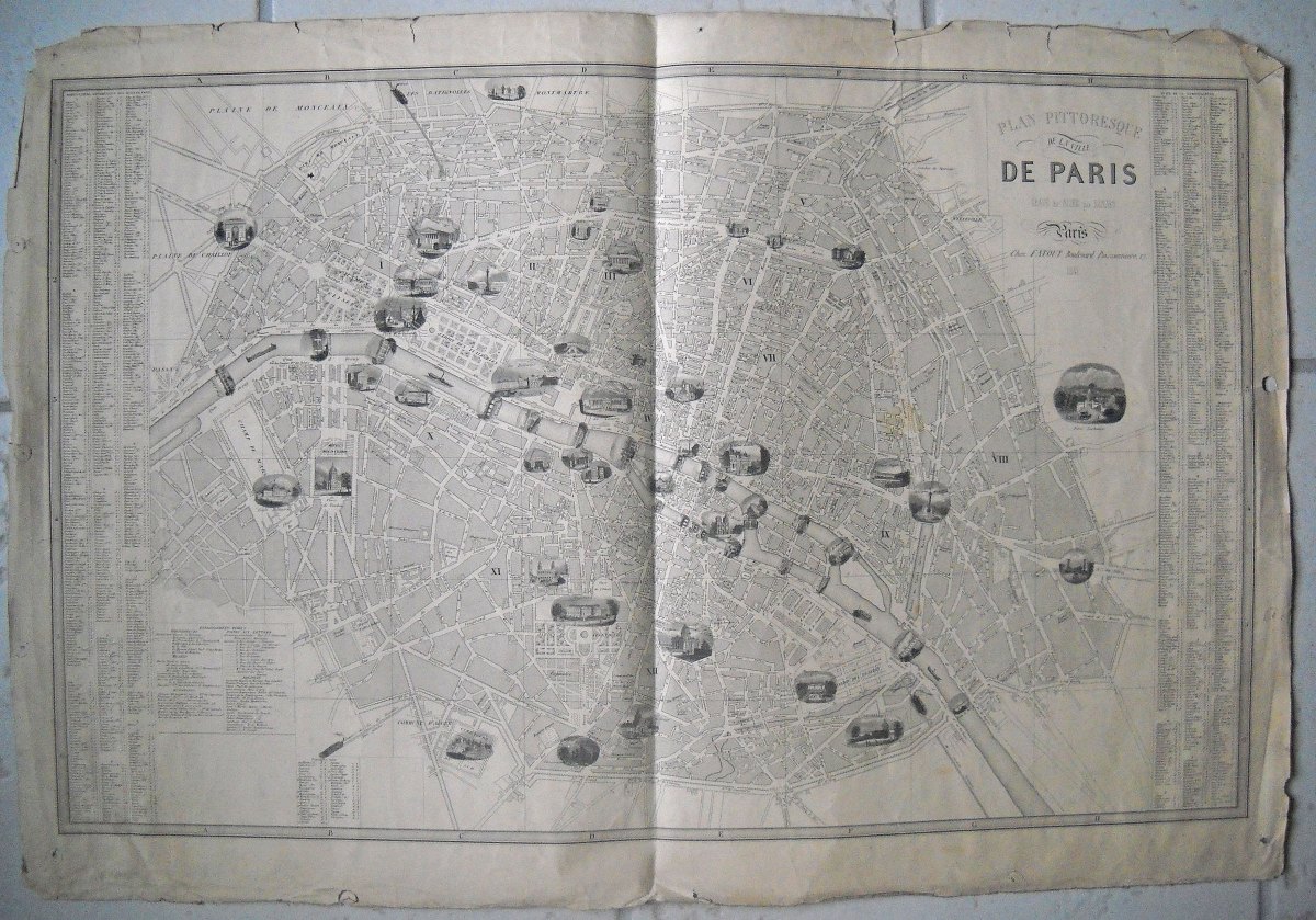 1842 ". 82,5 x 105,5 cm. Plié avec son carton d'origine. - " Nouveau plan de Paris publié par Napoléon Chaix
