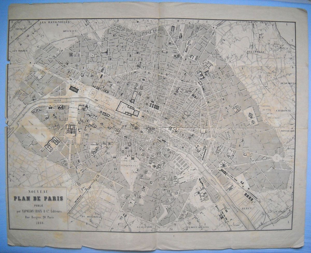 1858 ". 54,5 x 68 cm. Pliures et petits défauts. - " Nouveau plan de Paris monumental