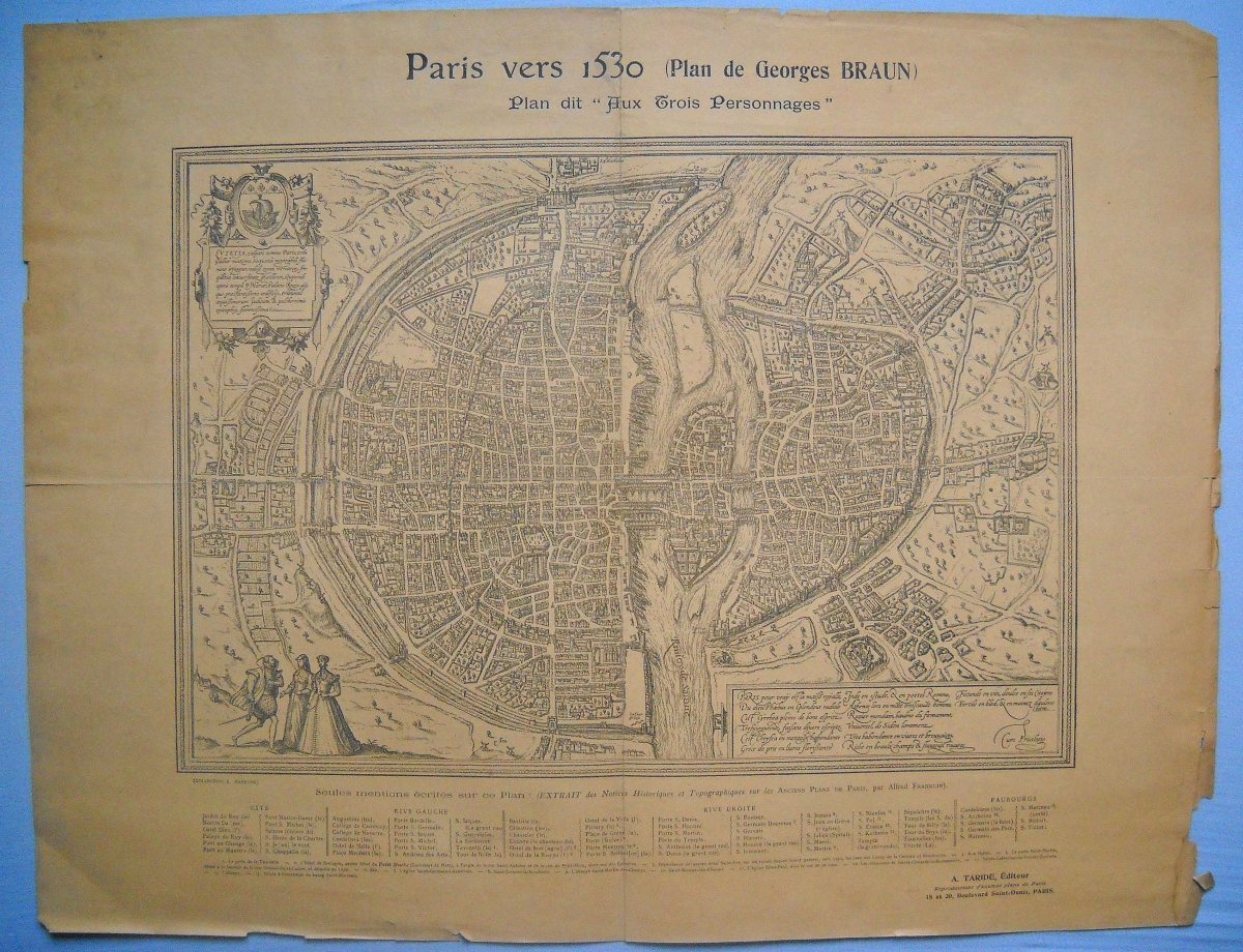 Joint : carte murale " Paris capitale par P. Vidal-Lablache " - " Monuments et vues des environs de Paris " Garnier Frères. - " Paris vers 1530 (plan de Georges Braun) " Reproduction.