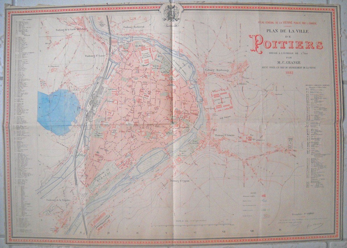 Joint : Lot de 22 cartes I.G.N. d'Indre-et-Loire, 55 x 73 cm - " Plan de la ville de Poitiers " par M.C. Grange, 1882, 68 x 97 cm.