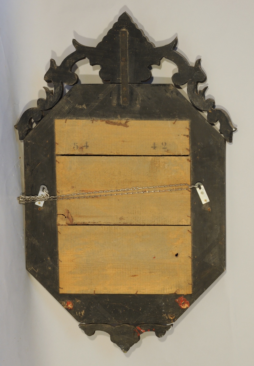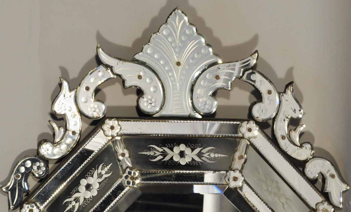 MIROIR À PARE-CLOSES inclinées reliées par des fleurs. Les glaces sont gravées de feuillages et fleurs. Orné au sommet et à l'amortissement de volutes et acanthes.