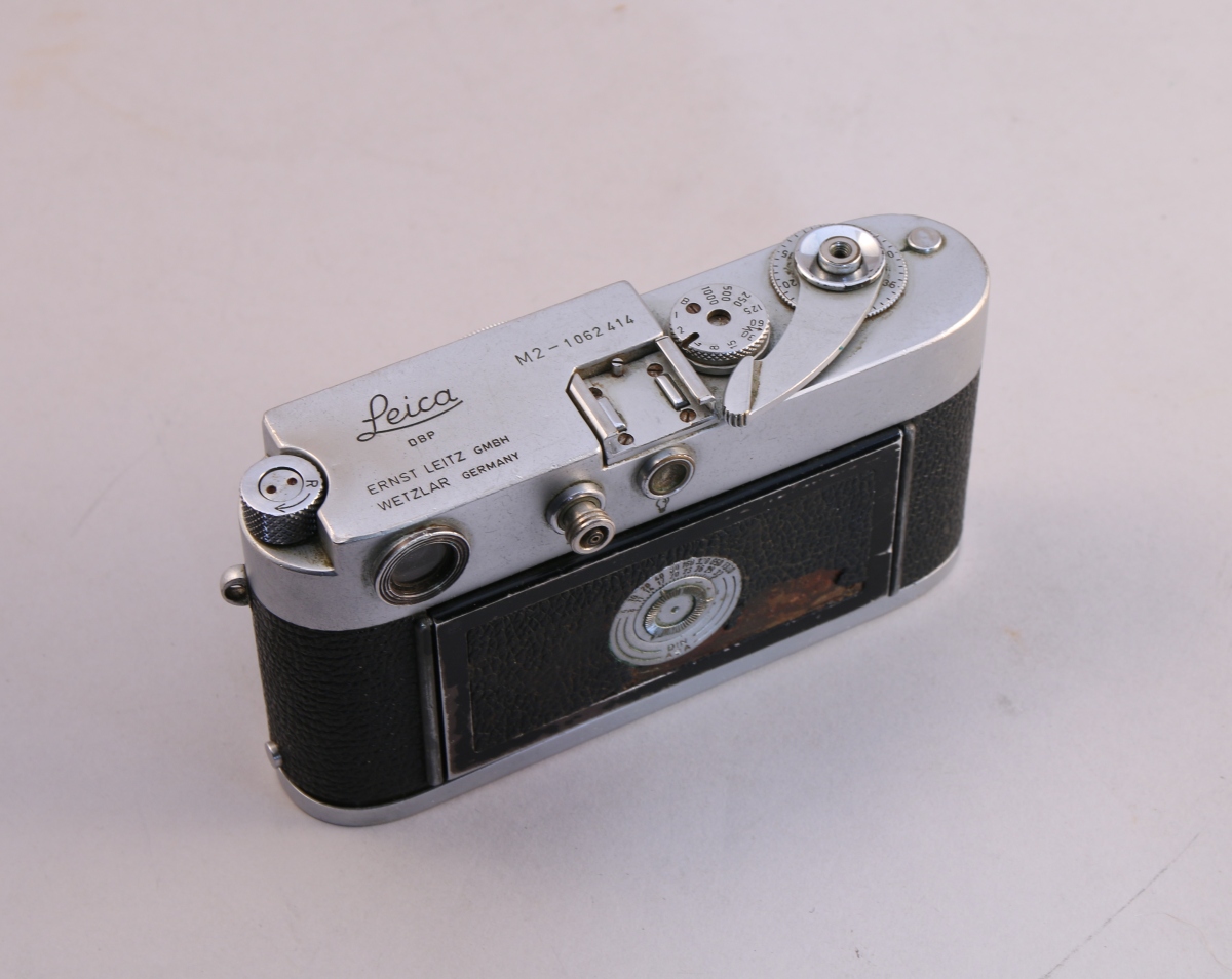 Leica M2 No 1062414 avec objectif Elmar 1:2.8 F = 50, avec sacoche brune.
