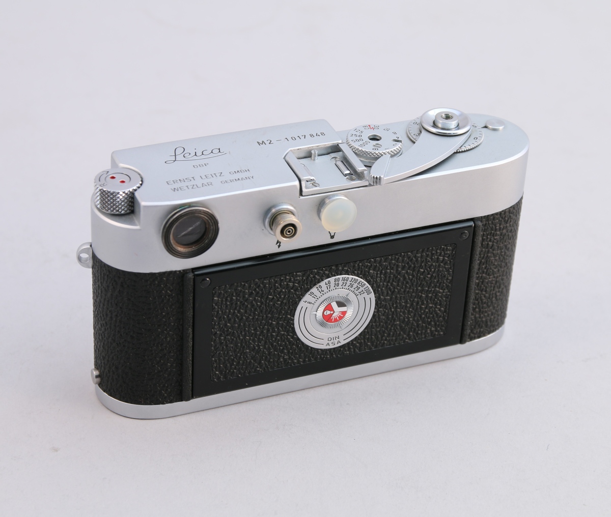 LEICA M2 No1017 848 (sans objectif). Excellent état de conservation. Légers frottement sur la partie supérieure à lemplacement du flash. Appareil révisé.