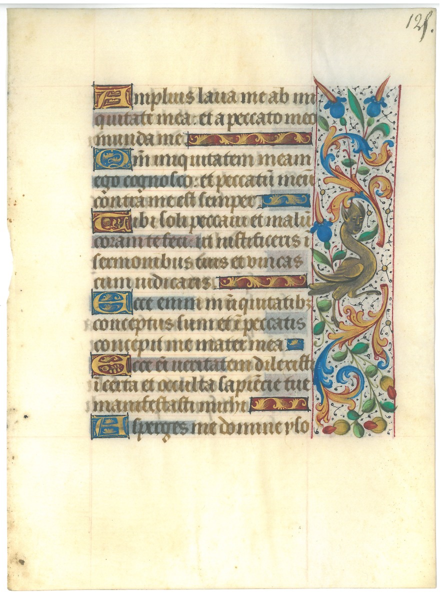Fragment livre d'heures Rouen 15éme - grotesques en marges.