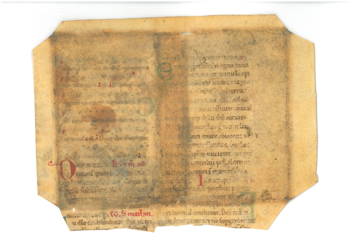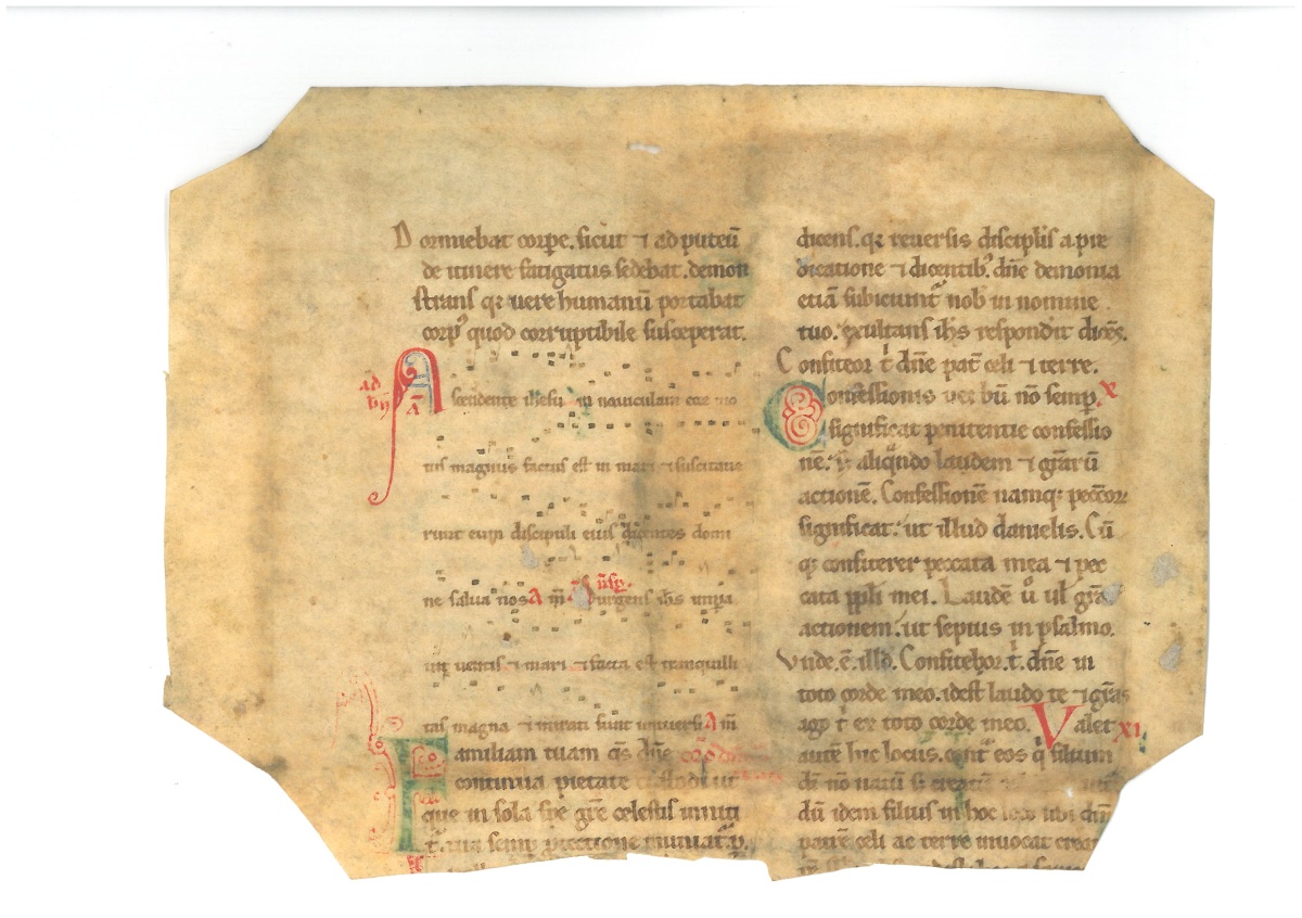 Rare fragment d'évangile avec neumes, XIIe (circa 1150). Utilisé à fin de reliure de réemploi.