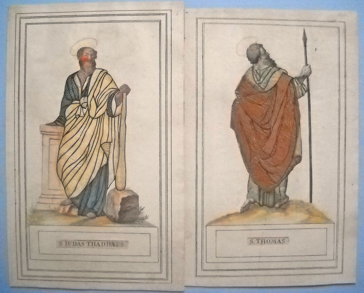 Joint : 8 images de saintetés dont une suite de 7 p. sur papier vergé à décor d'un montage alliant fragments de tissu/gravure et aquarelle, 22 x 37 cm, XIXe siècle. Contrecollées sur papier épais.