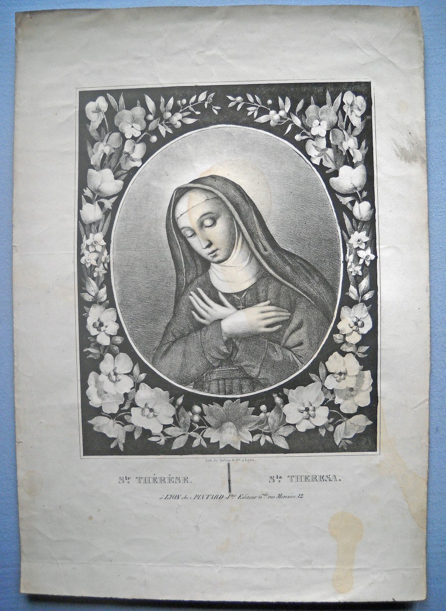 Joint : 2 lithographies éditées par Pintard jeune à Lyon : Ste Thérèse ; Dieu seul est la vérité.