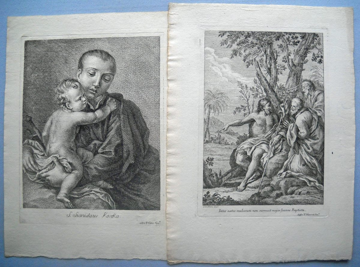 Beau lot de + de 135 estampes gravées en taille-douce sur papier vergé, tous formats, dont 4 rehaussées de coloris d'époque, à représentation de saints, personnages et scènes bibliques, exécutées en majorité par des éditeurs italiens de la région de Venise et d'autres villes de la péninsule (les Remondini, Teodoro Vieri, Joseph Wagner, Innocente Alessandri, Isabella Piccini, Gaetano Zancon, Giuliano Giampiccoli, Simon Cantarini, Niccola Mellini, Giuseppe Vallardi, Domenico Cunego), réimpressions d'uvres du XVIe et XVIIe siècle (Guido Reni, Diana Scultori). Épreuves produites par les Remondini à destination des pays slaves et d'Amérique Latine. Quelques doublons.