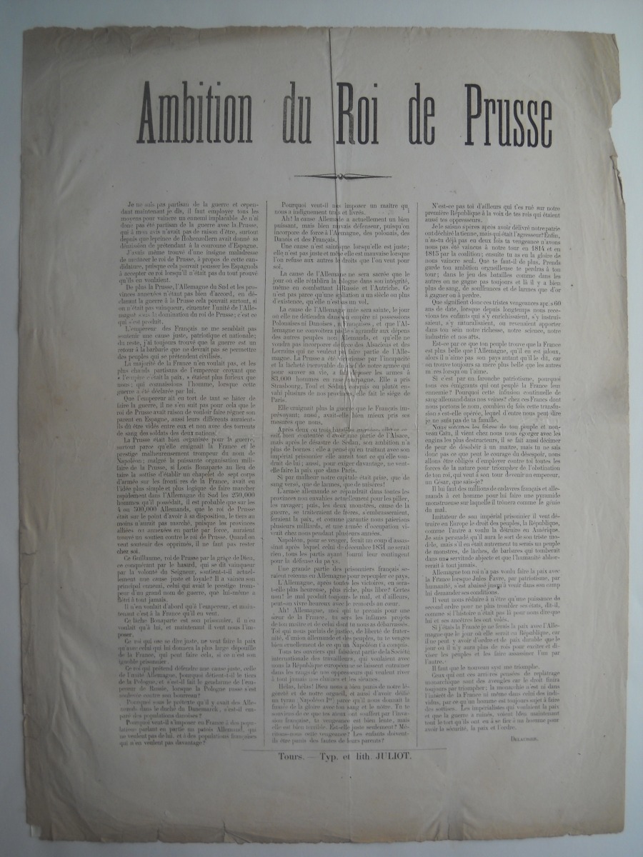, 54 x 36 cm ; Ambition du roi de Prusse, imprimé à Tours, 54 x 40cm.