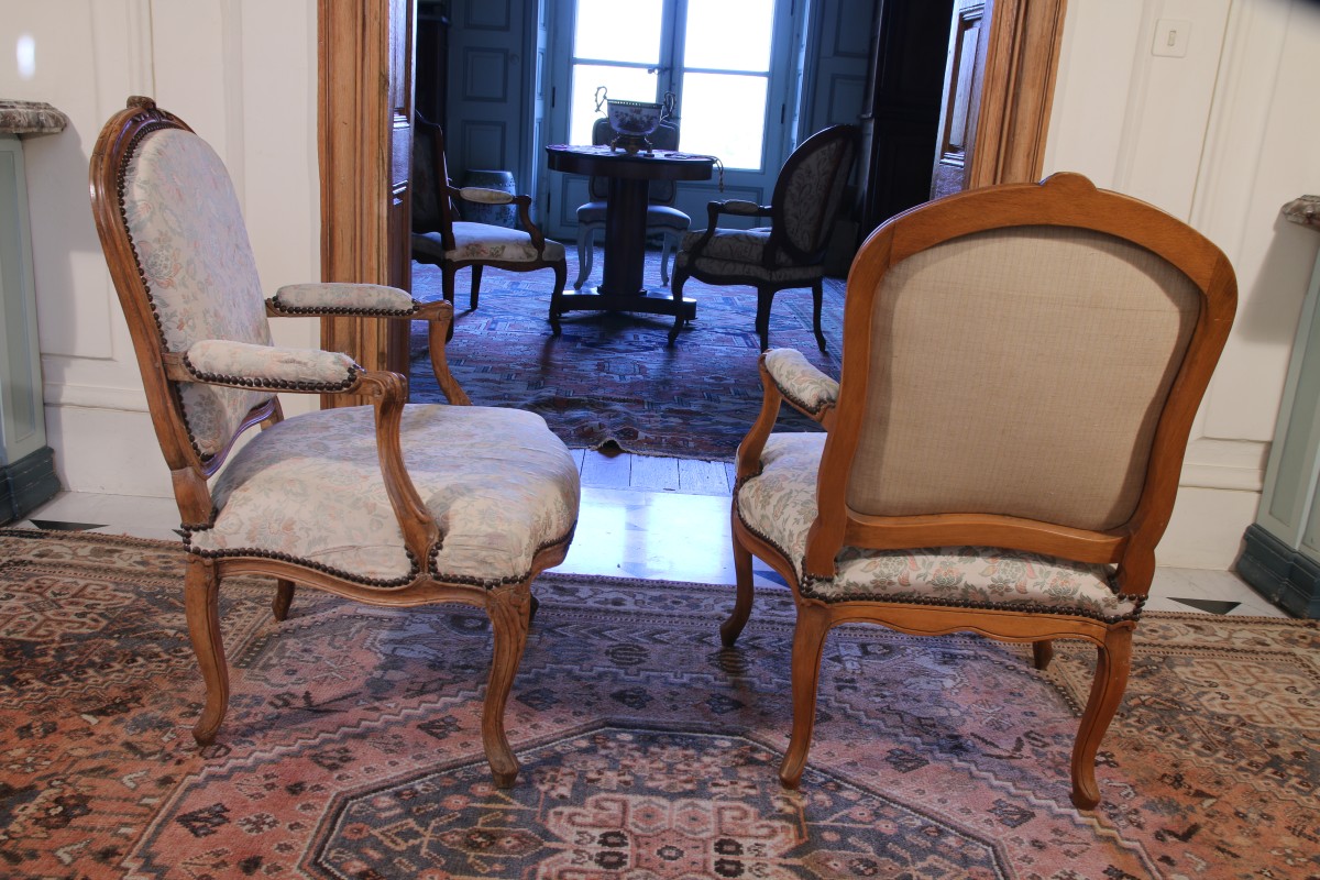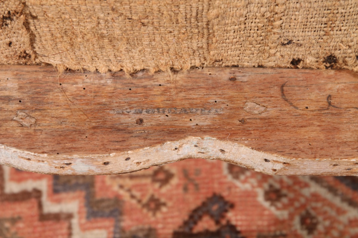 Un d'époque Louis XV. Estampillé G. BOUCAULT. (une console d'accotoir restaurée).