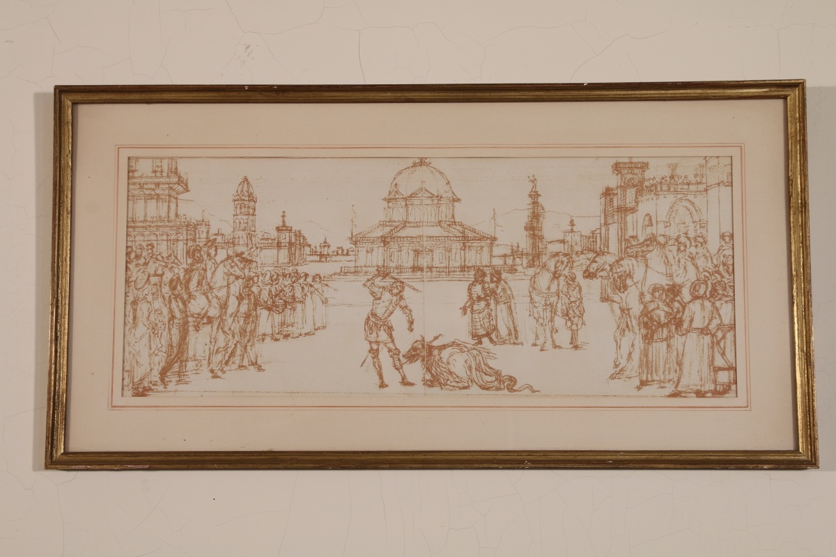 - Scène de décapitation d'un démon sur une place de Toscane. 14 x 37 cm.