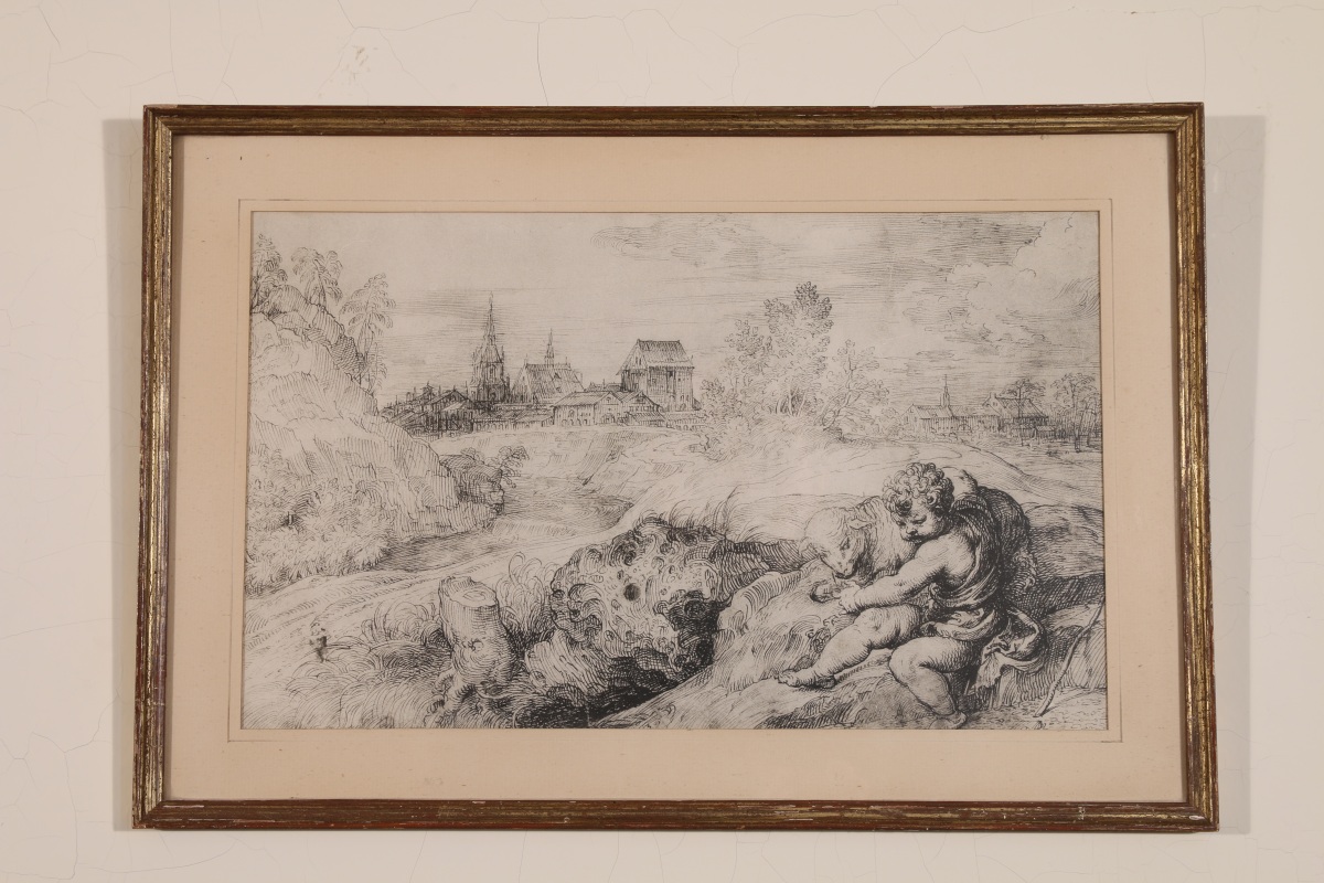- Jeune berger (Saint-Jean-Baptiste ?) dans un paysage avec une ville. 19,5 x 32,5 cm.
