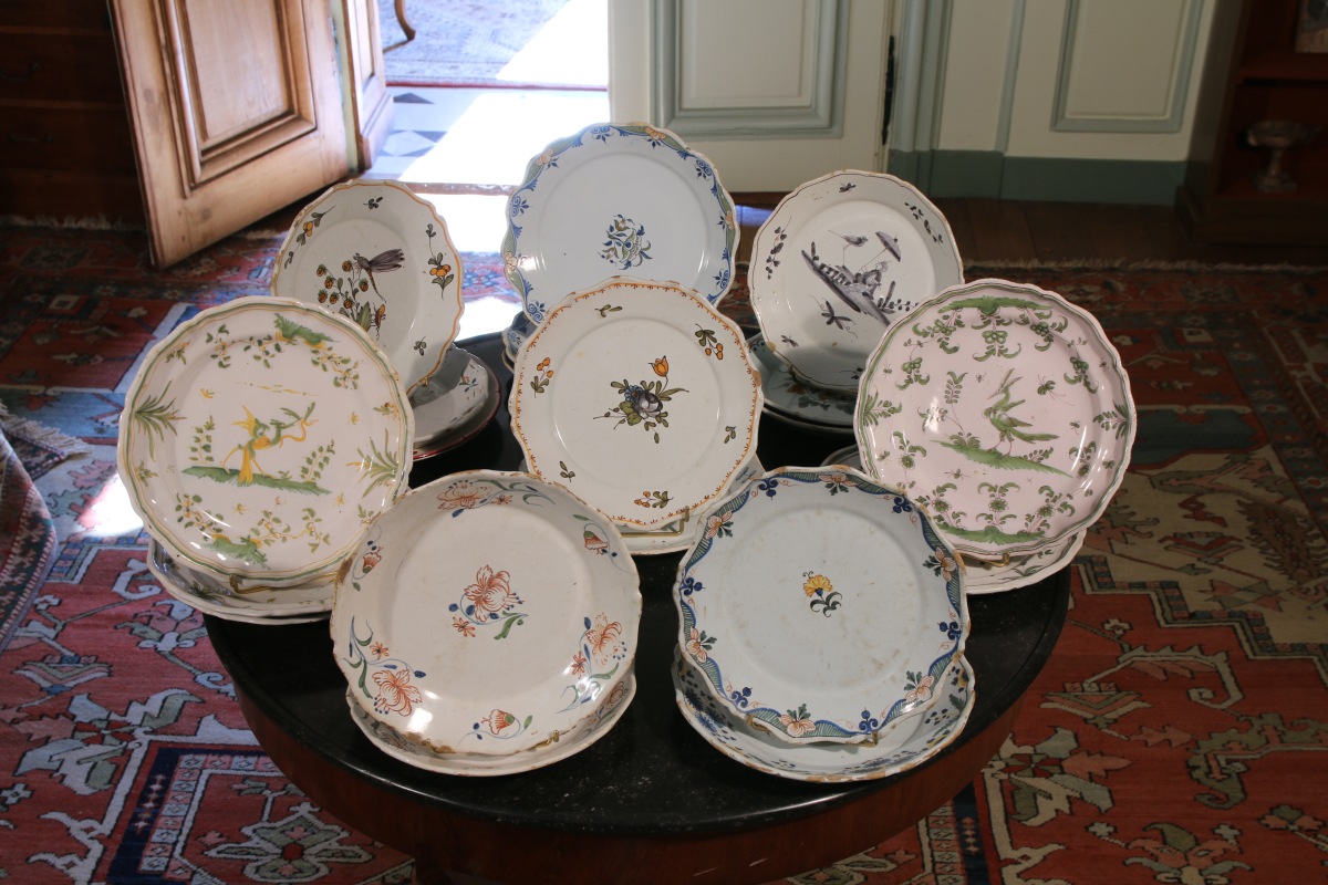 FAÏENCES FRANCAISES, ENVIRON 20 ASSIETTES, dont MOUSTIERS, ROUEN, NEVERS, EST..;