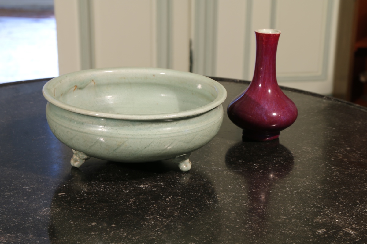 JOINT : VASE à panse basse et haut col émaillé violet flammé. XIXe. Haut. 14 cm.