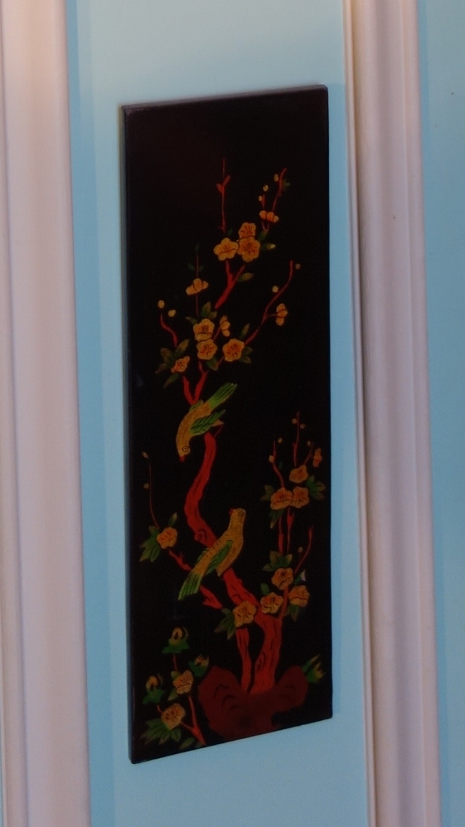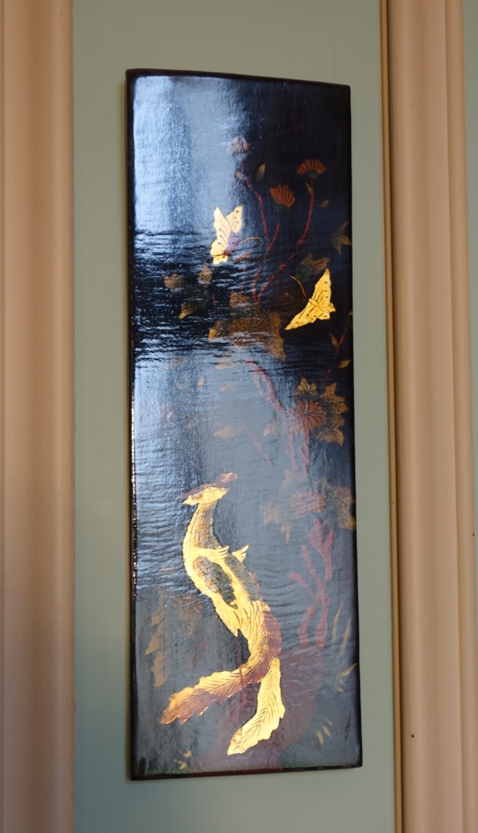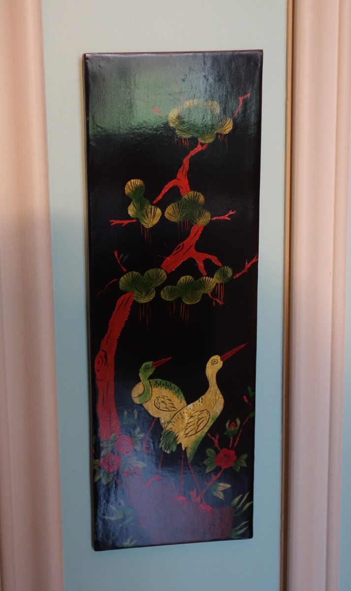 JAPON. Quatre PANNEAUX DE LAQUE à décor d'oiseaux, canards, papillons sur une branche. XXe.