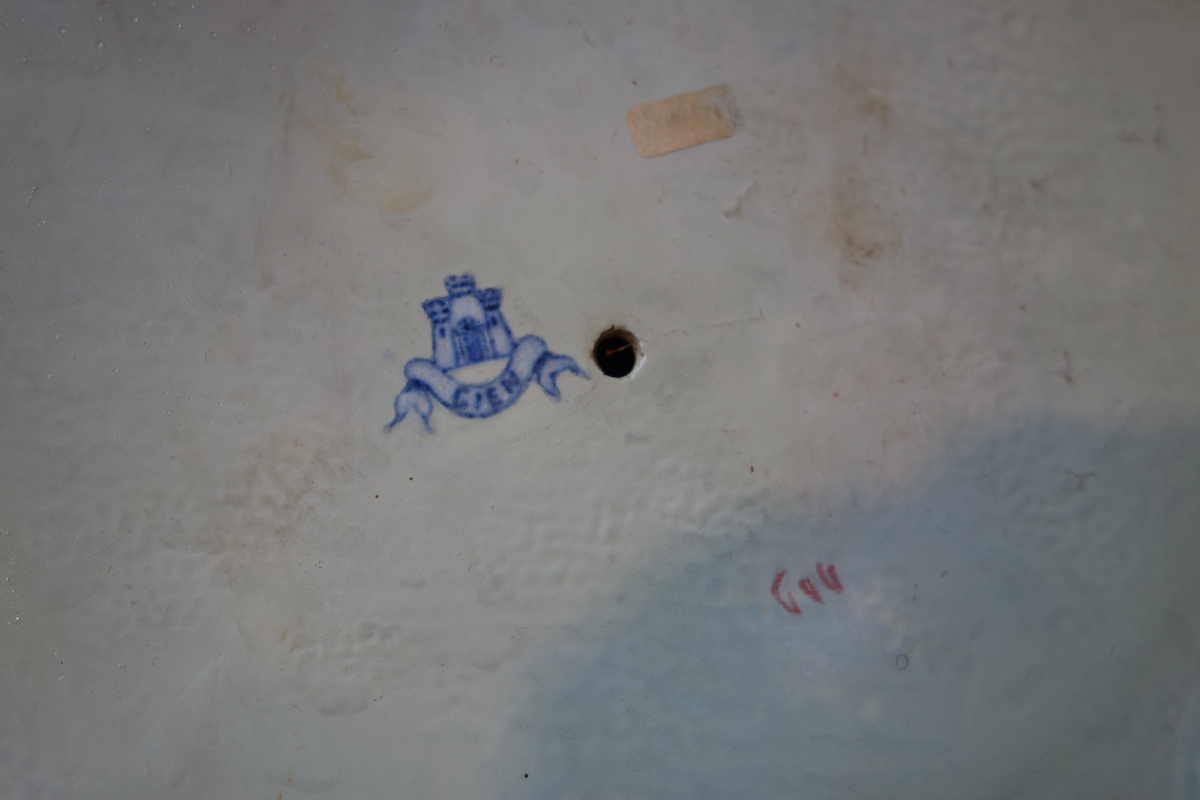 GIEN. JARDINIÈRE en faïence à décor en bleu et rouge...