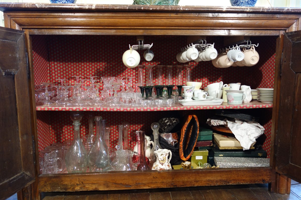 CONTENU de buffet dont importante réunion de METAL ARGENTE, VERRERIES...