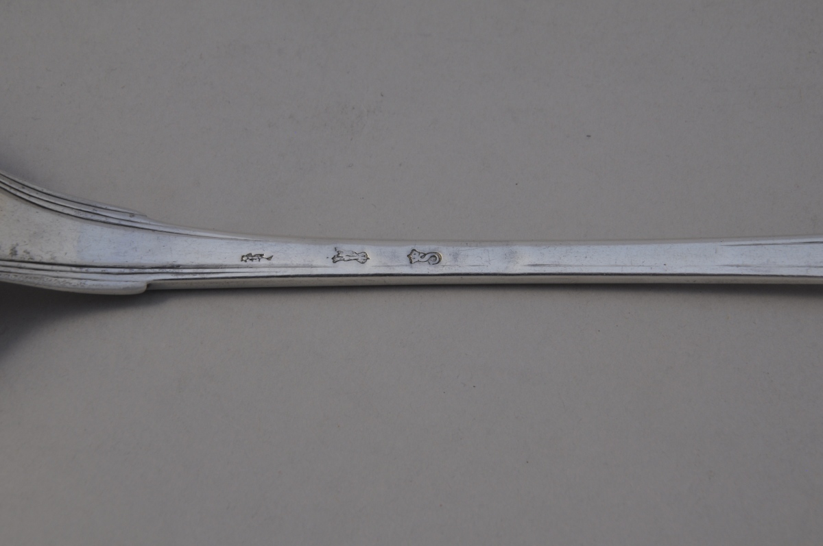 PARIS. CUILLÈRE À RAGOUT en argent. Modèle filet-contour à la coquille. Monogrammée.