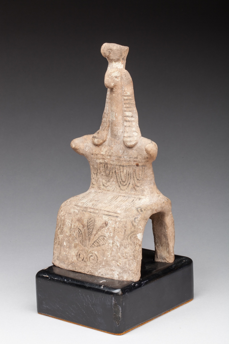 Terracotta statue of a seating GOD with a bird's beak from Thessaly during the 9th century BC.