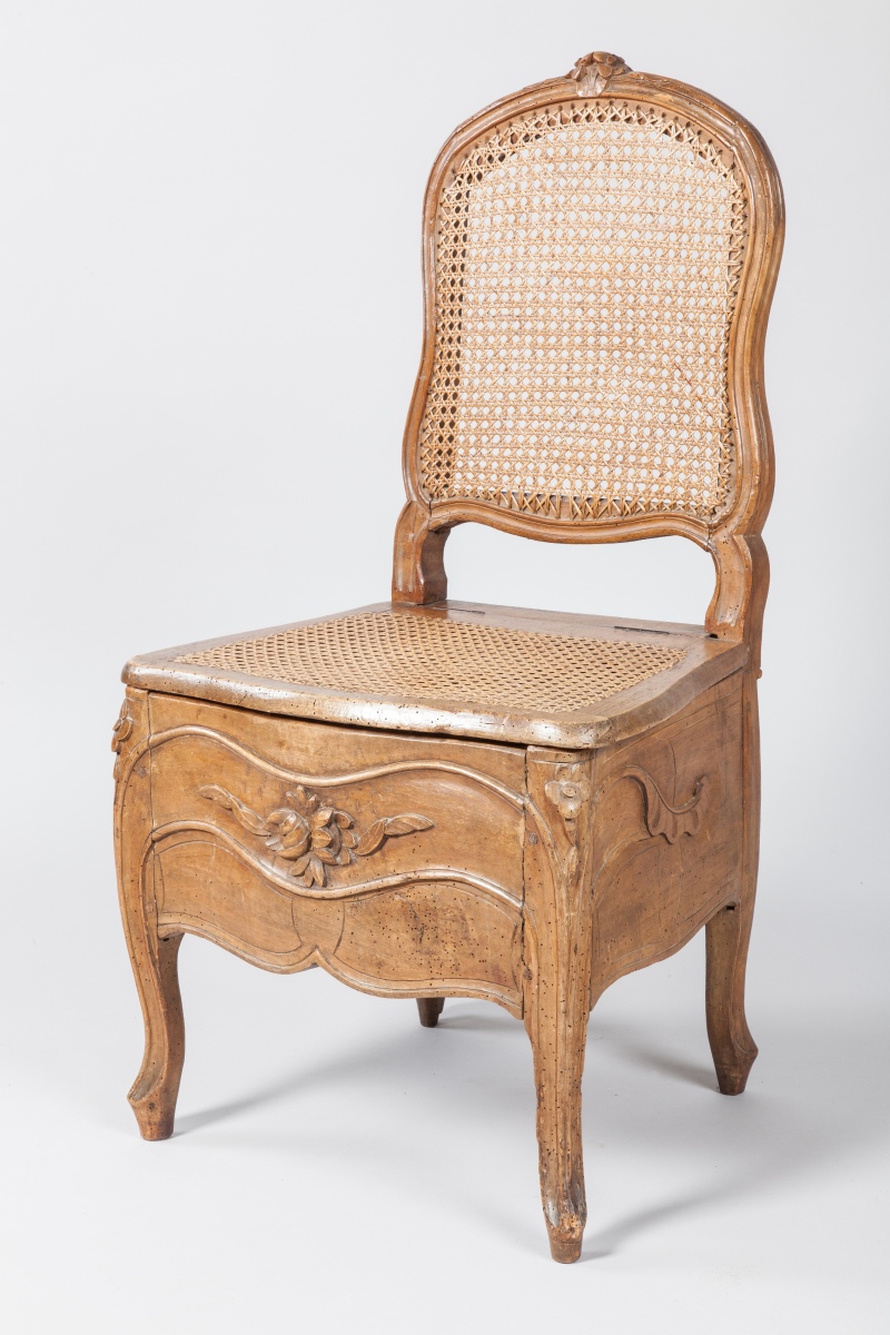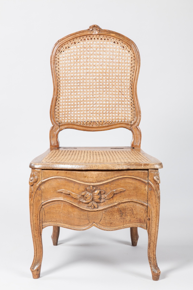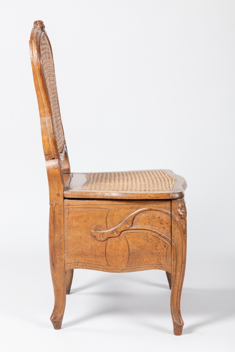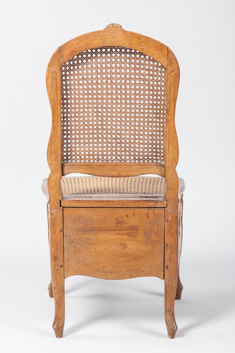 A Louis 15 caned and carved wood COMMODE CHAIR from the Maréchal de Rochambeau Collection. Louis 15 period.