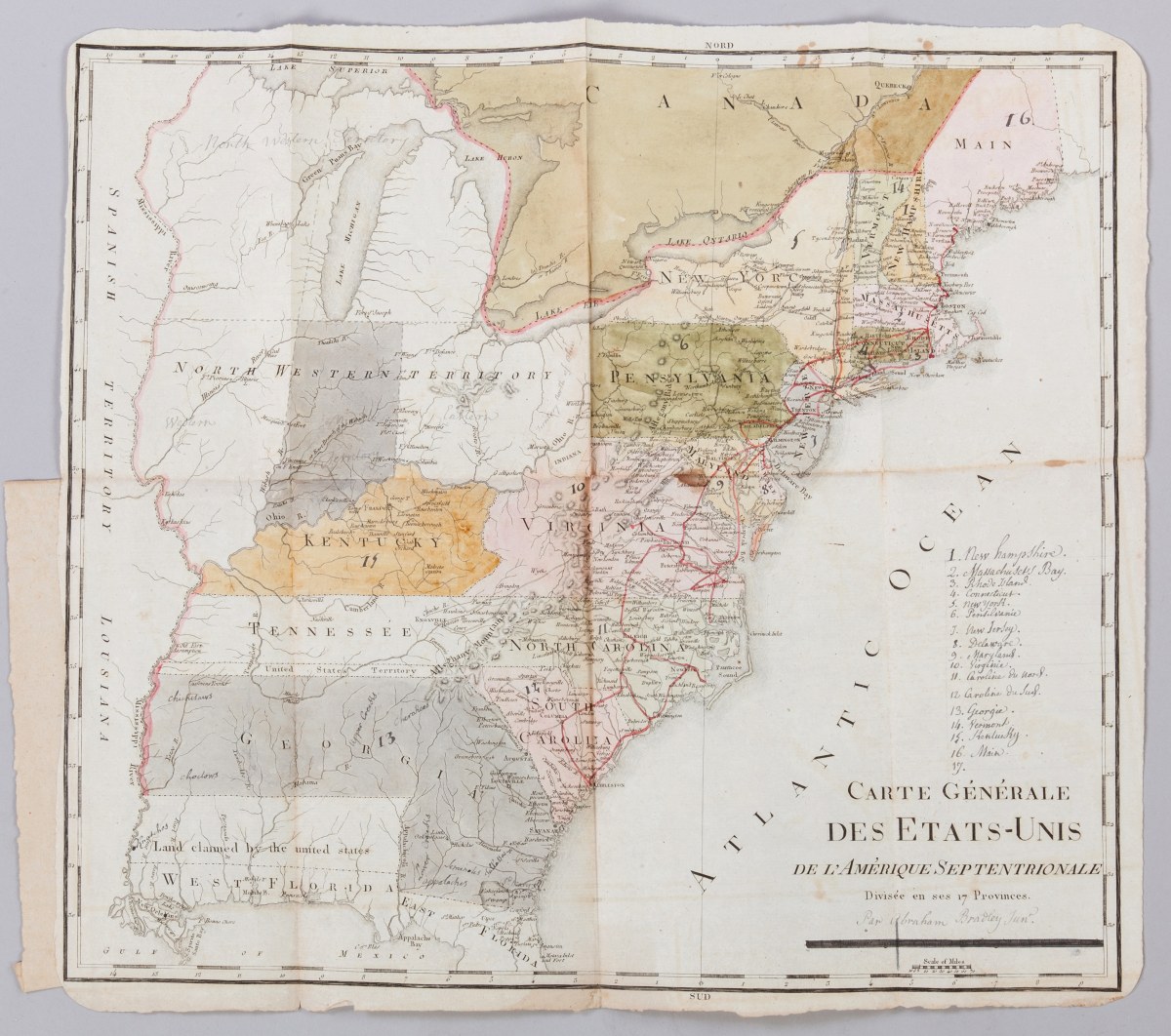 "Carte générale des États-Unis de l'Amérique septentrionale, divisée en ses 17 provinces".