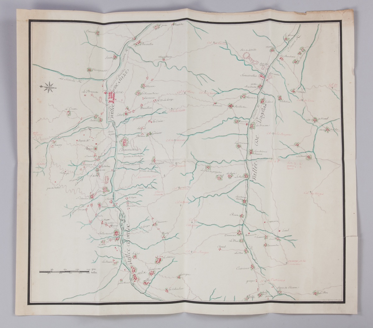 A manuscript PLAN of the SUZE VALLEY from the vicomte de Rochabeau collection.
