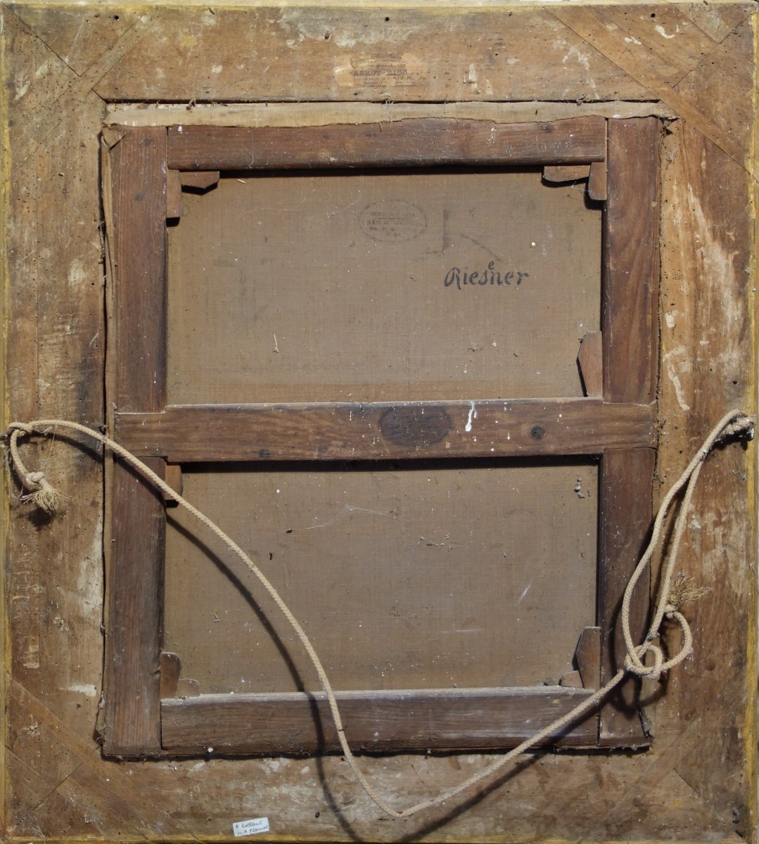 Toile marqué "Ri(e)sener" au dos et signée "Rolland".