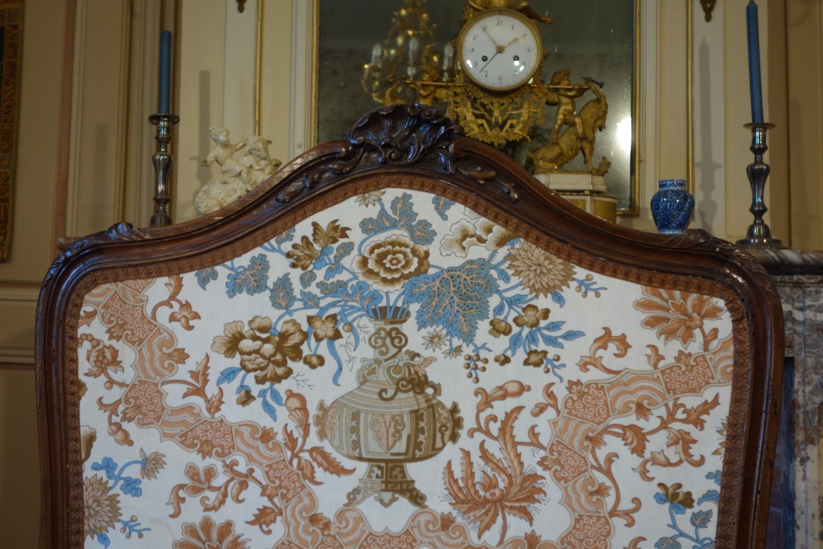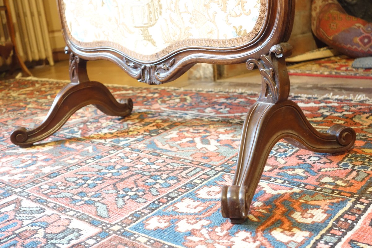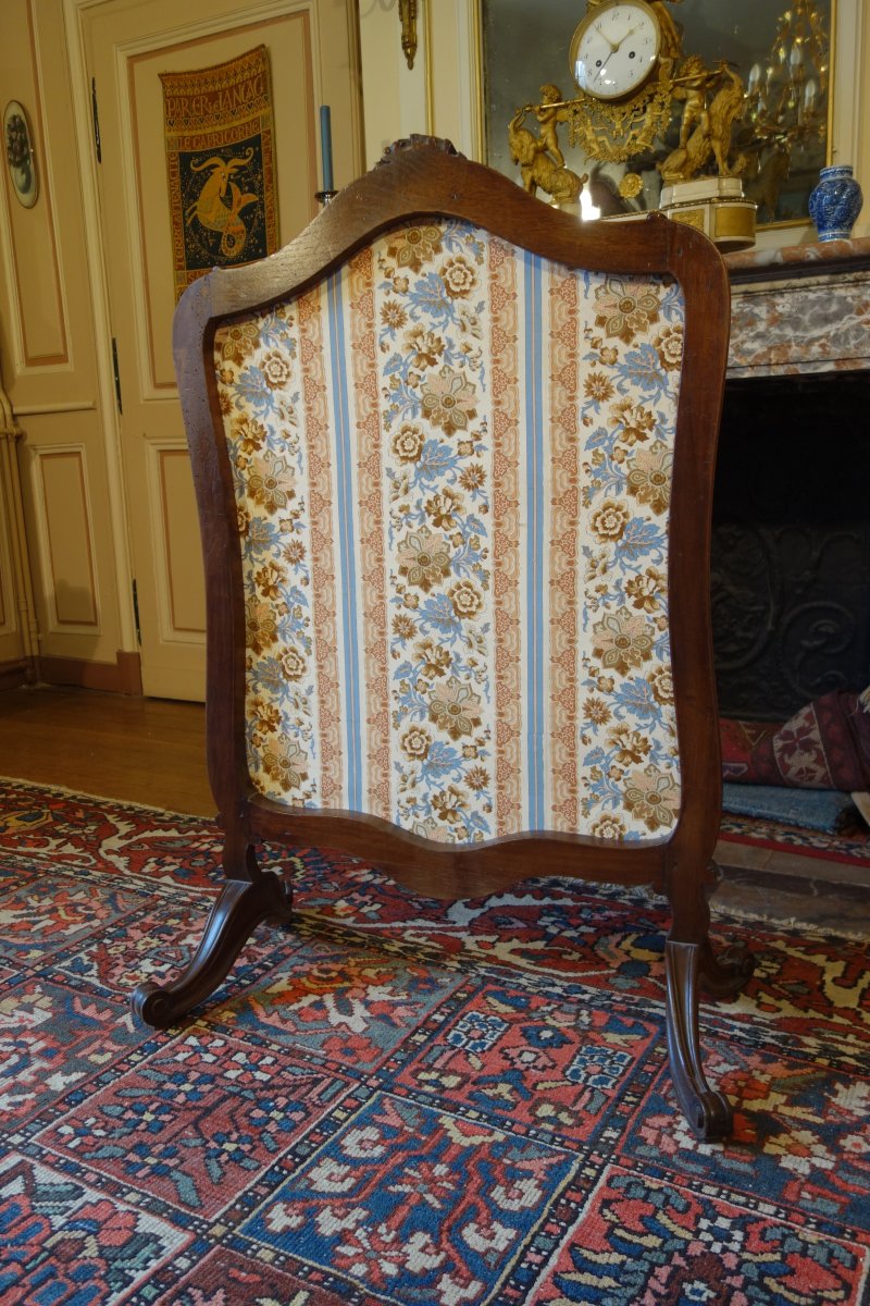 ÉCRAN de CHEMINÉE en bois naturel mouluré et sculpté à décor de style rocaille.