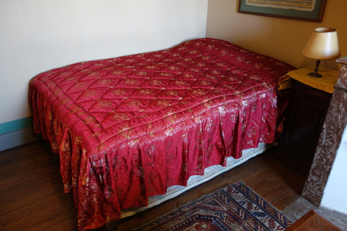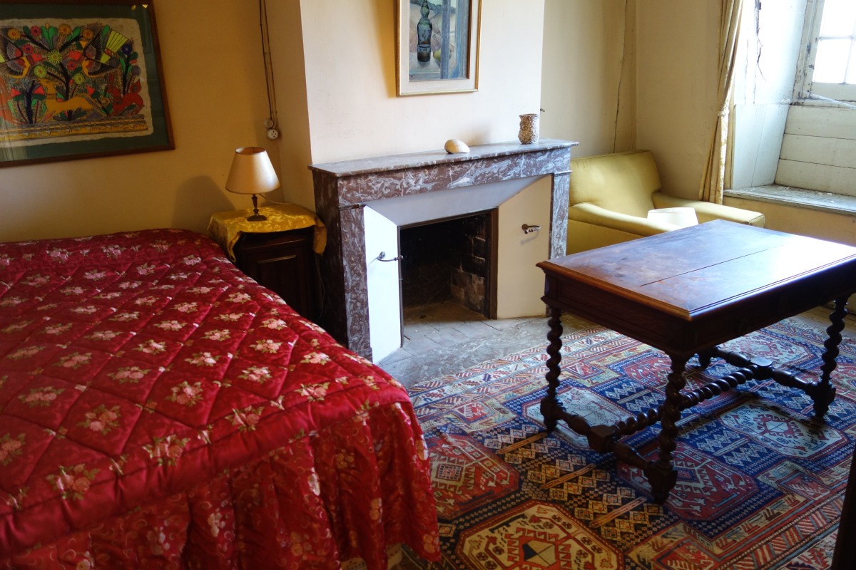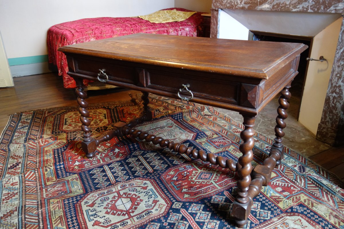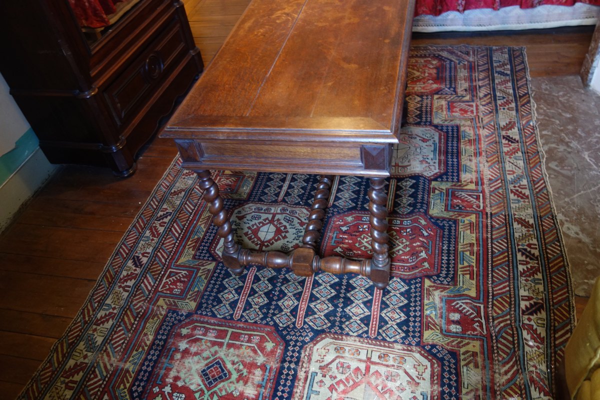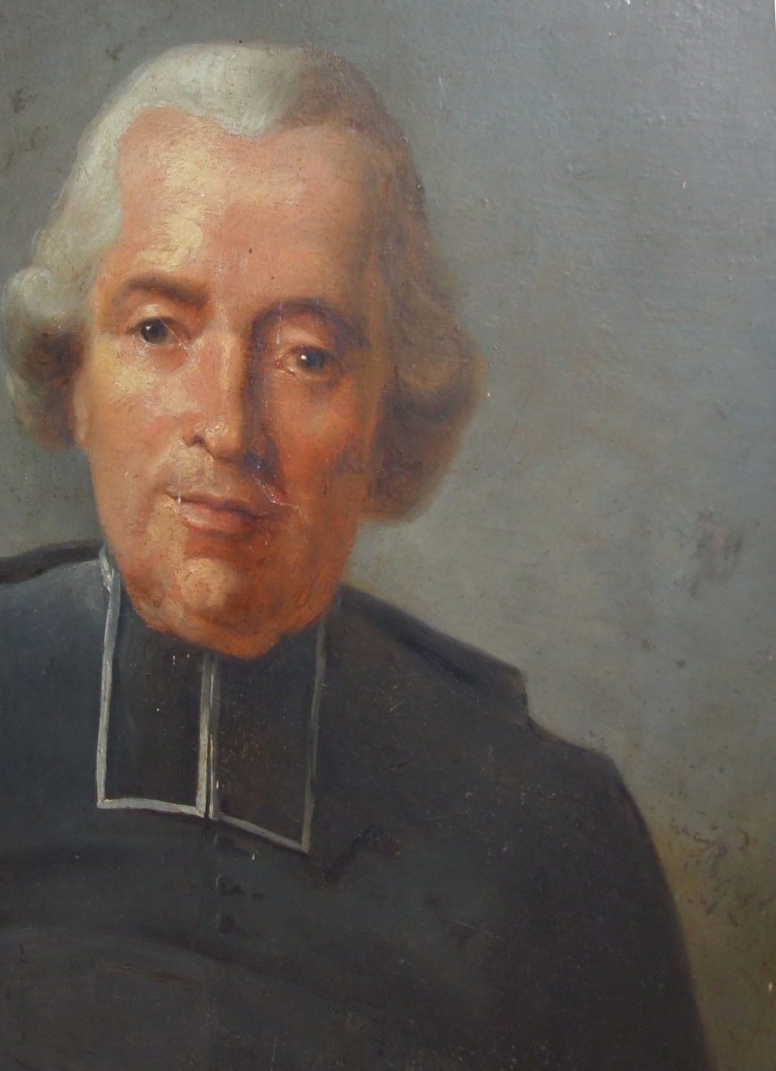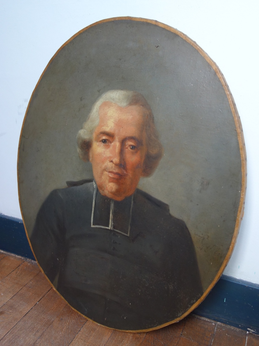 CONTENU DE LA QUATRIÉME CHAMBRE comprenant notamment une table-bureau à piètement torsadé, un grand tapis, un fauteuil, une table de chevet, une armoire, une toile d'une école ancienne représentant un abbé diverses uvres graphiques A découvrir.