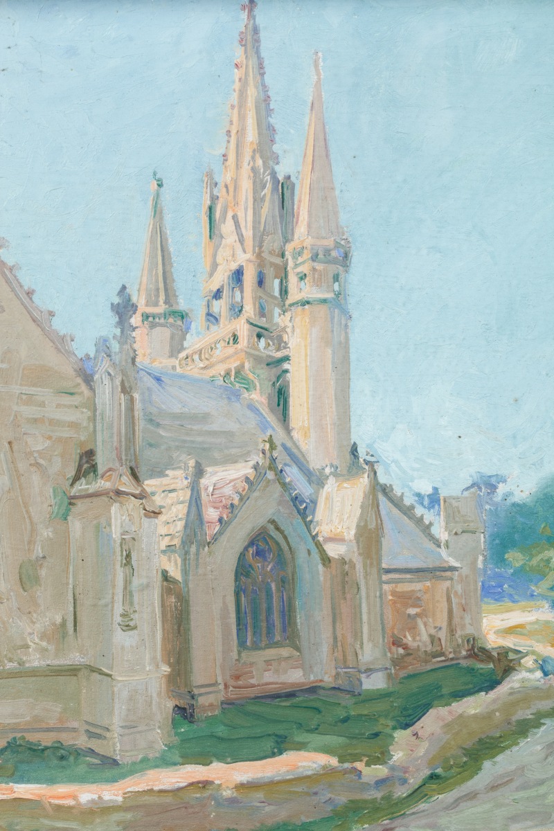 Arthur MIDY. The Saint Fiacre du Faoüet chapel. Oil on wood panel. Signed.