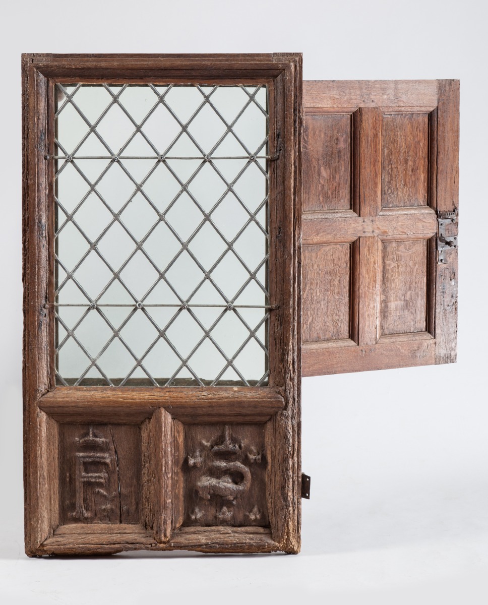 FENÊTRE dite "de FRANÇOIS IER" en chêne. La partie inférieure est ornée du chiffre de François Ier et de la Salamandre sculptés en bas relief. La partie supérieure vitrée ouvre par un vantail à caissons, fermant au moyen d'une serrure au chiffre de François Ier.
