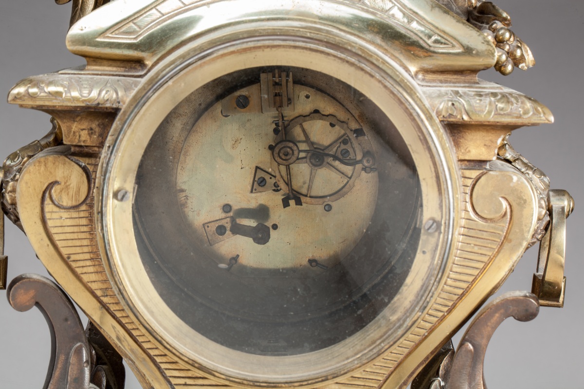 Importante PENDULE DE CHEMINÉE AUX SPHINGES en bronze de deux...