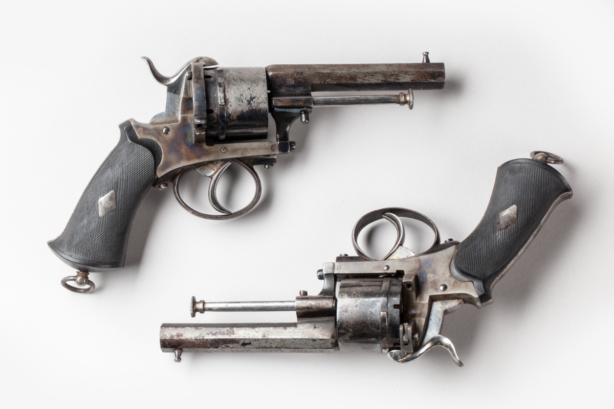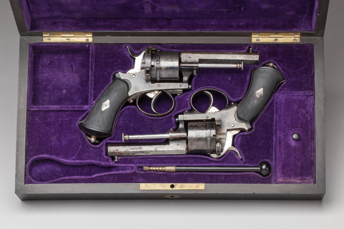 A PAIR of REVOLVERS of LEFAUCHEUX type in a KIT-BOX. Mid-19th century.