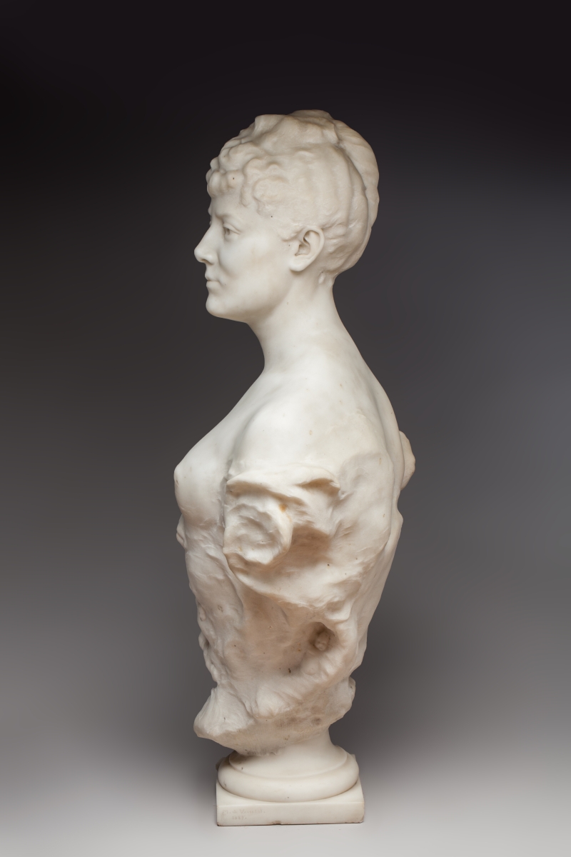 Marble bust of Delphine de Lizy with cupids by Anatole MARQUET DE VASSELOT. Signed and dated 1889.