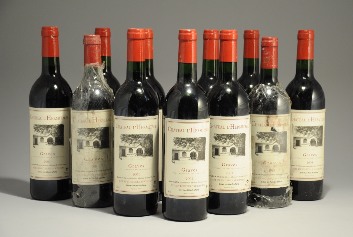 GRAVES - Château L'Hermitage - 1995 (2 bouteilles) et 2001 (9 bouteilles) - Soit 11 bouteilles.
