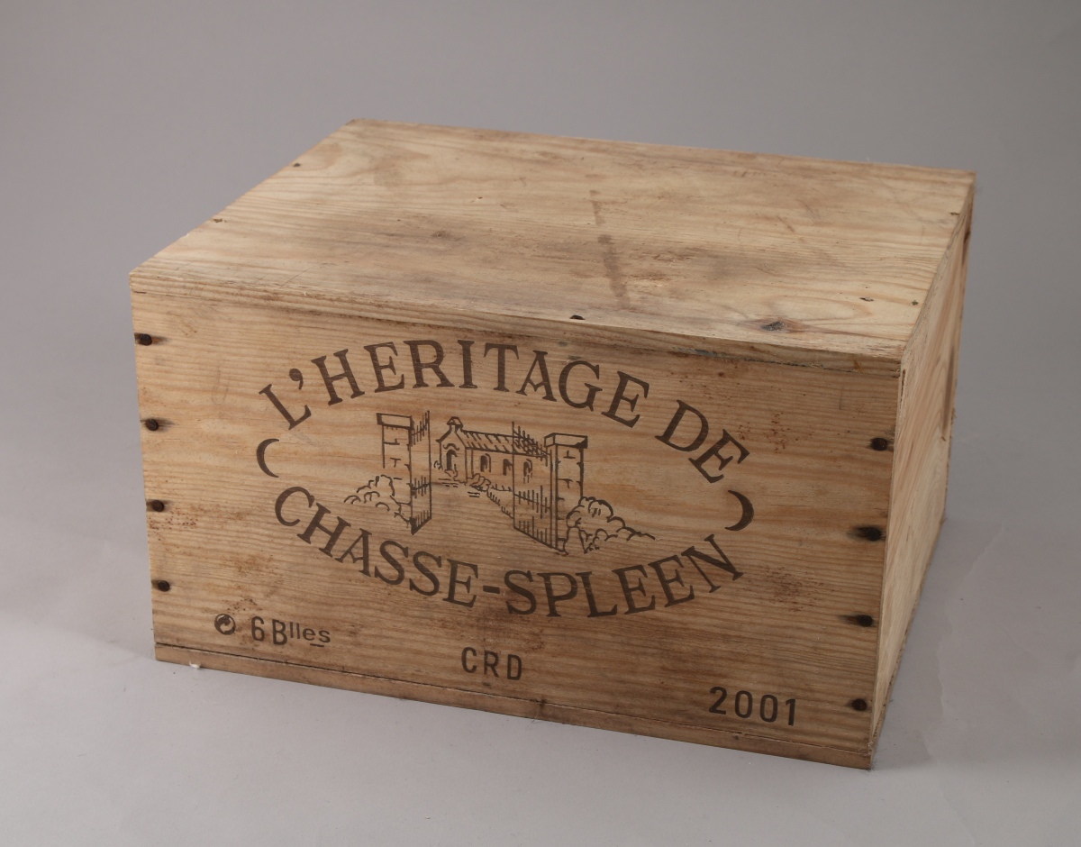 HAUT-MÉDOC. L'Hermitage de Chasse Spleen, 2001. 6 bouteilles. Caisse bois fermée. 2e vin de Chasse Spleen.