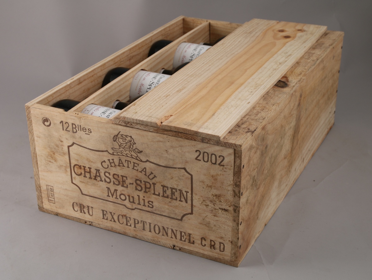 MOULIS. Château Chasse Spleen, 2002. 14 bouteilles. Caisse bois (ouverte pour contrôle). Cru bourgeois exceptionnel.