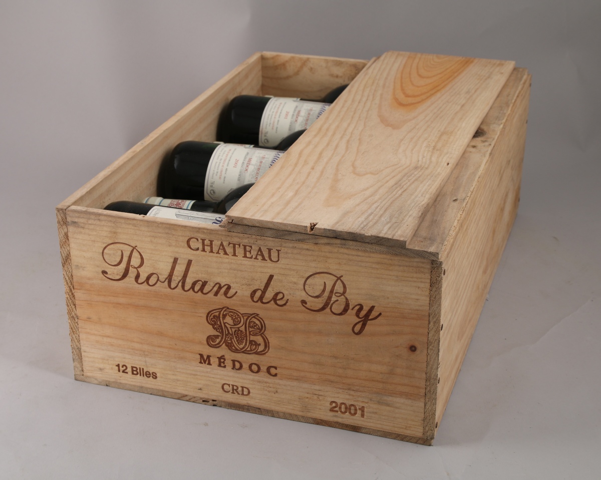 MÉDOC. Château Rolland de By, 2001. 12 bouteilles. Caisse bois (ouverte pour contrôle).