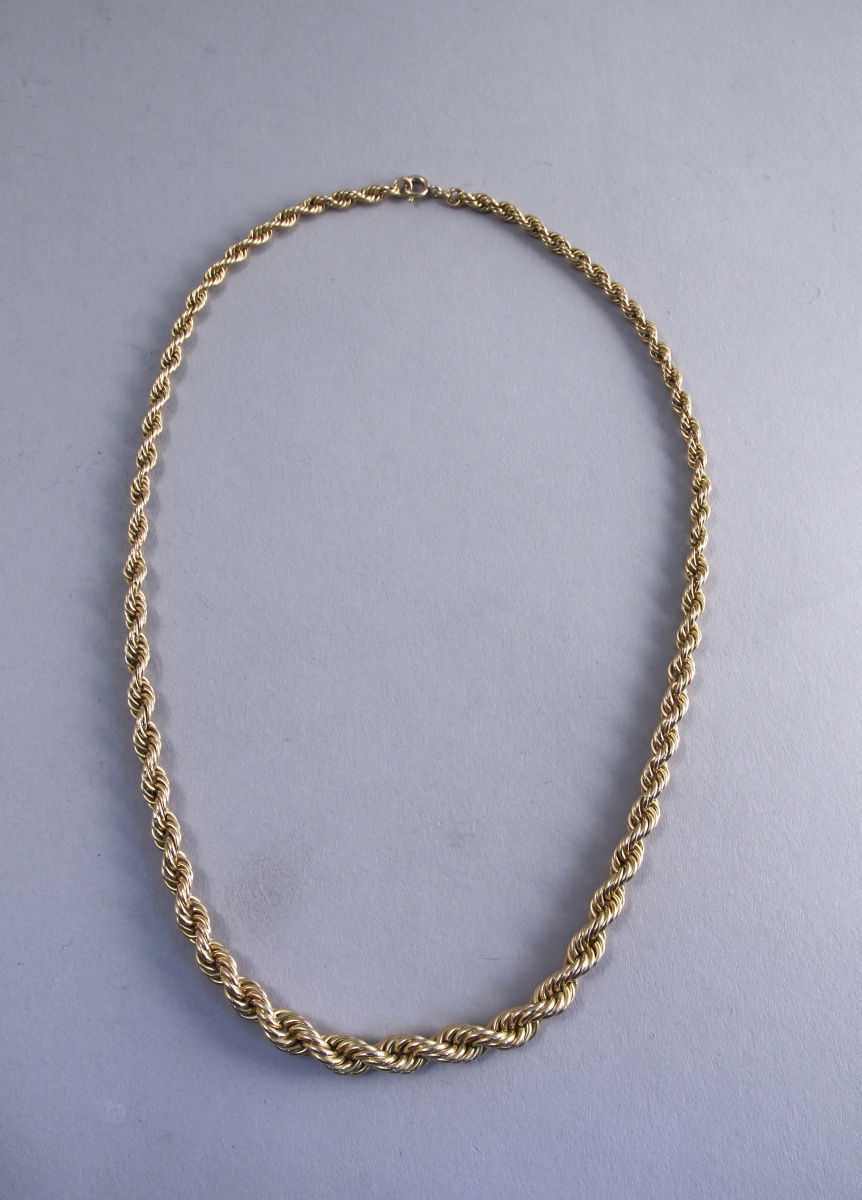 COLLIER en or jaune à maille corde en chute. Poinçons tête d'aigle et tête de rhinocéros.