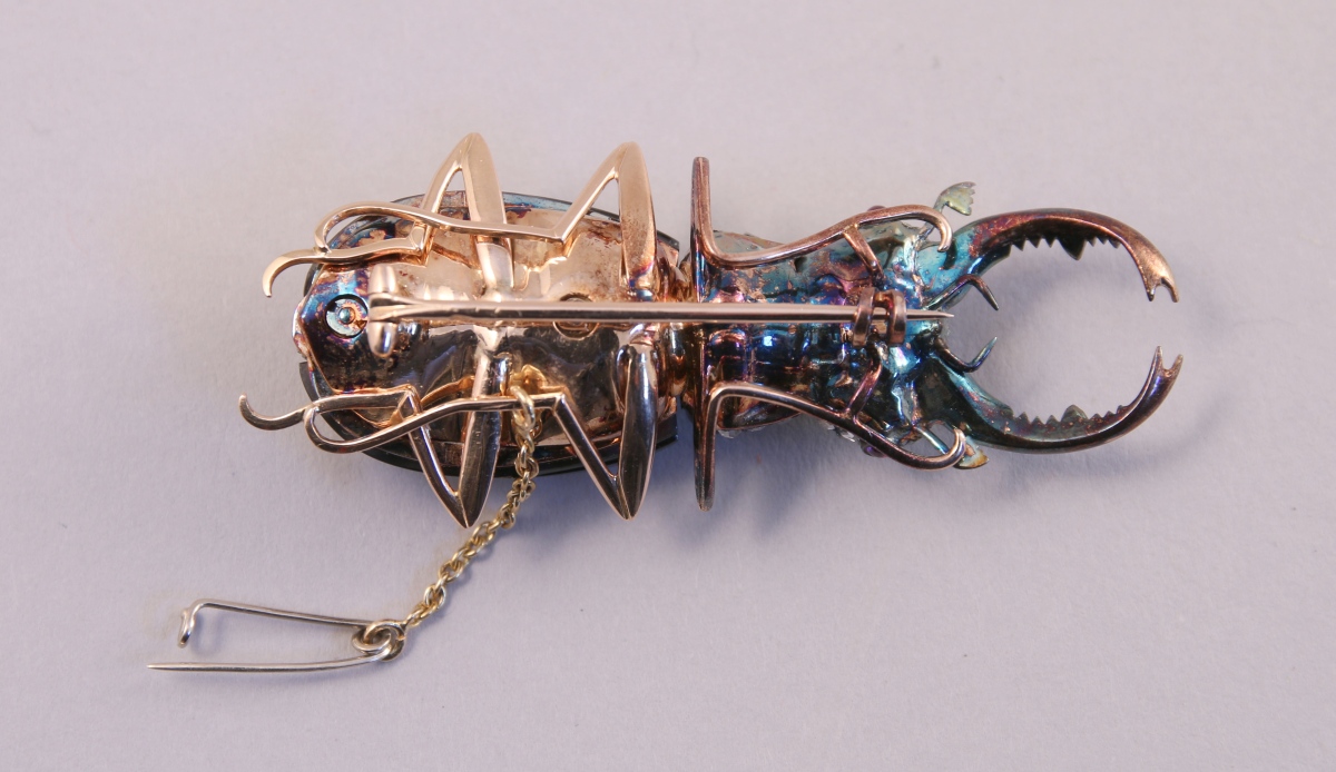 BROCHE SCARABÉE  en or jaune 750 millièmes, le corps...