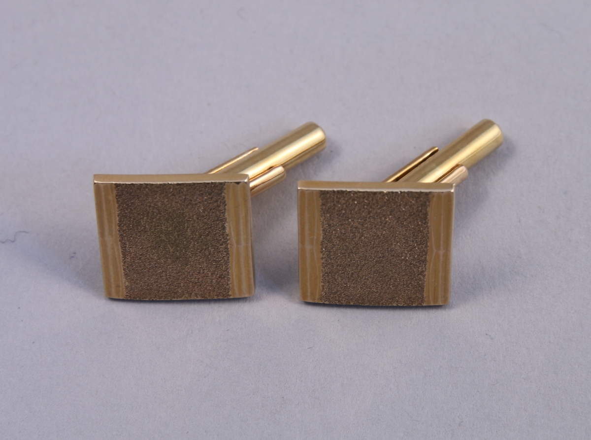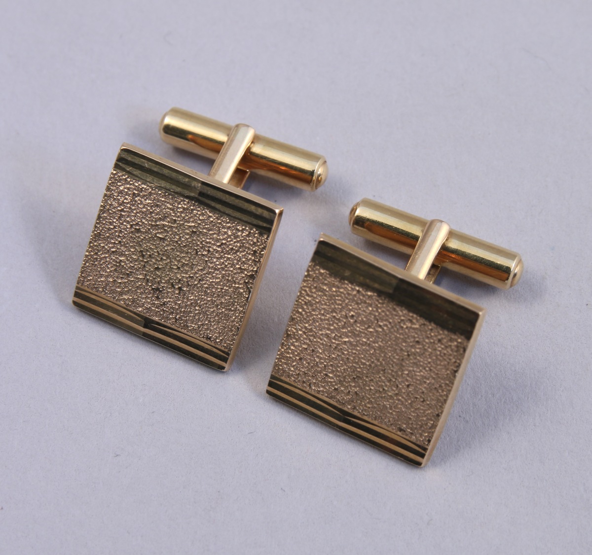 PAIRE de BOUTONS DE MANCHETTE de forme carrée en or à décor de guillochis.