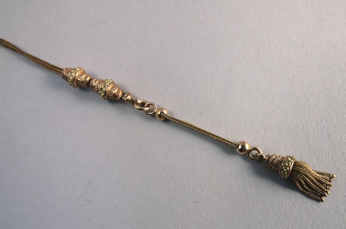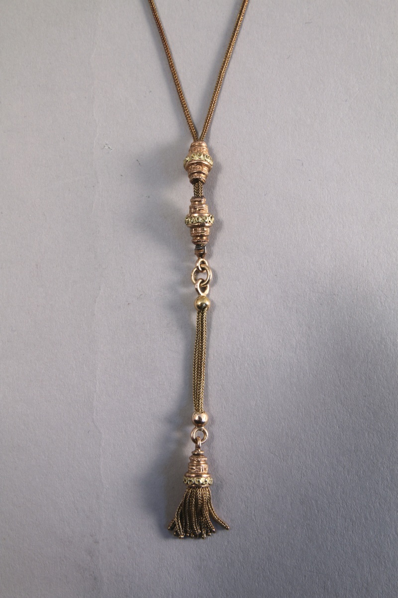 COLLIER en or rose et jaune, à mailles articulées, orné d'une embrasse. La taille ajustable par deux fermoirs ciselés en forme de vase.