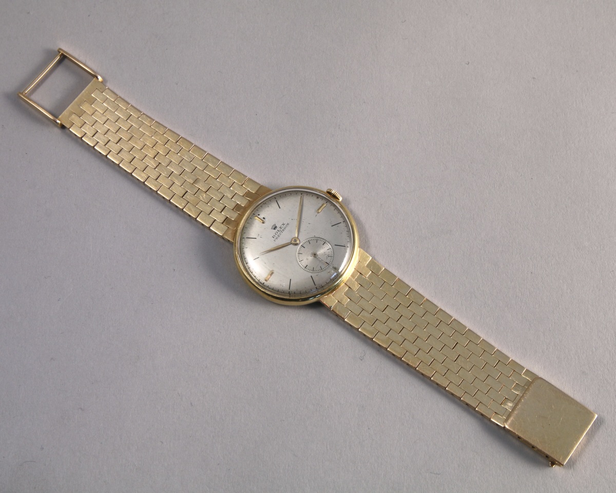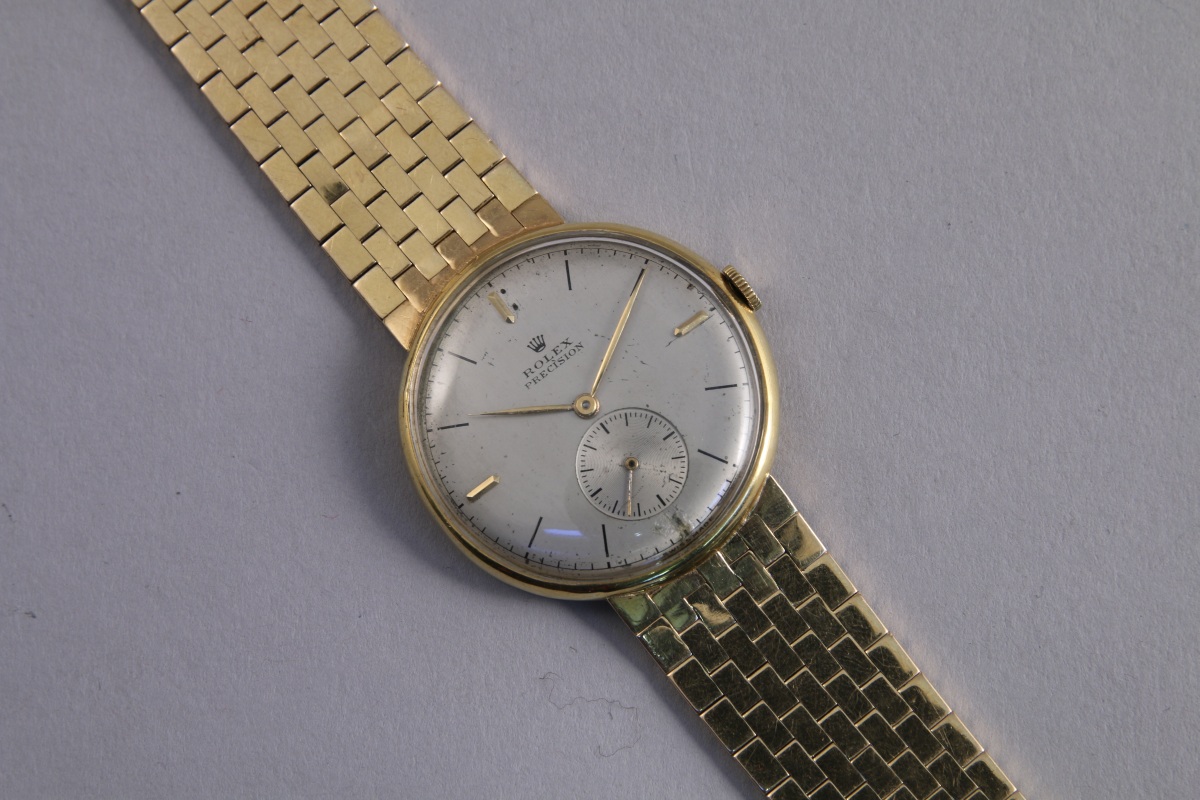 ROLEX PRÉCISION. MONTRE BRACELET D'HOMME en or, le cadran argenté à chemin minutes, la trotteuse à six heures. Le boitier numéroté 4432, le bracelet à mailles articulées. Mouvement mécanique à remontage manuel.