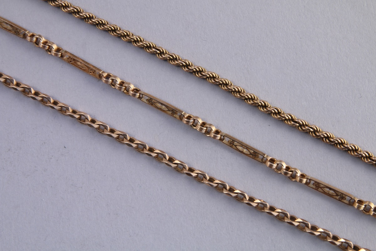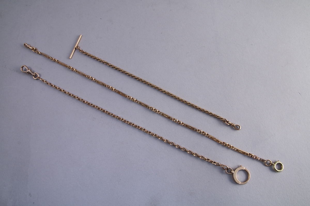3 CHAÎNES-GILETIÈRES en or rose. Poinçon tête d'aigle.